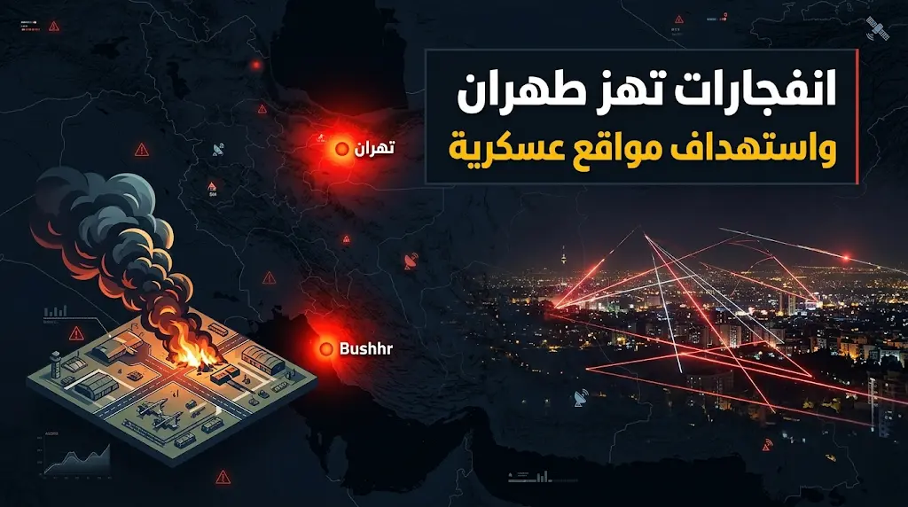 انفجارات عنيفة تهز العاصمة الإيرانية طهران واستهداف منشآت عسكرية في قاعدة هكمش وميناء بوشهر