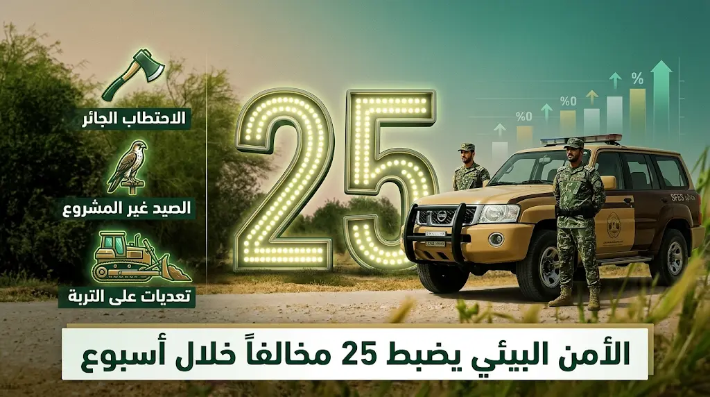 في إطار الجهود المستمرة لحماية الغطاء النباتي وتعزيز الاستدامة البيئية ضمن مستهدفات رؤية السعودية 2030، كشفت القوات الخاصة للأمن البيئي اليوم الأحد 22 مارس 2026، عن حصيلة عملياتها الميدانية خلال الأسبوع المنصرم، وأسفرت الحملات عن ضبط 25 شخصاً ارتكبوا مخالفات متنوعة لنظام البيئة في عدة مناطق بالمملكة.