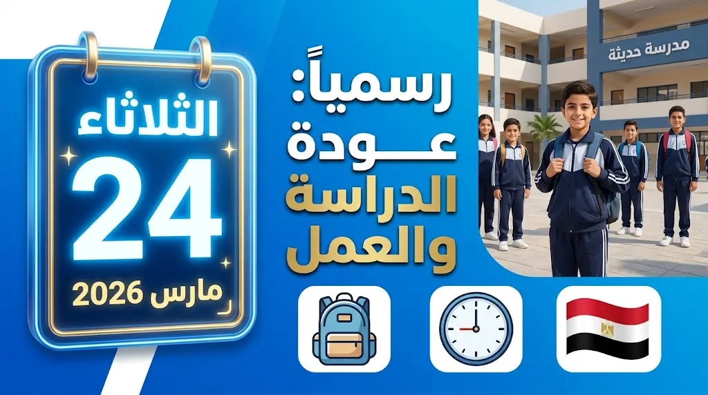 موعد عودة الدراسة والعمل في مصر الثلاثاء 24 مارس 2026 بعد انتهاء إجازة عيد الفطر