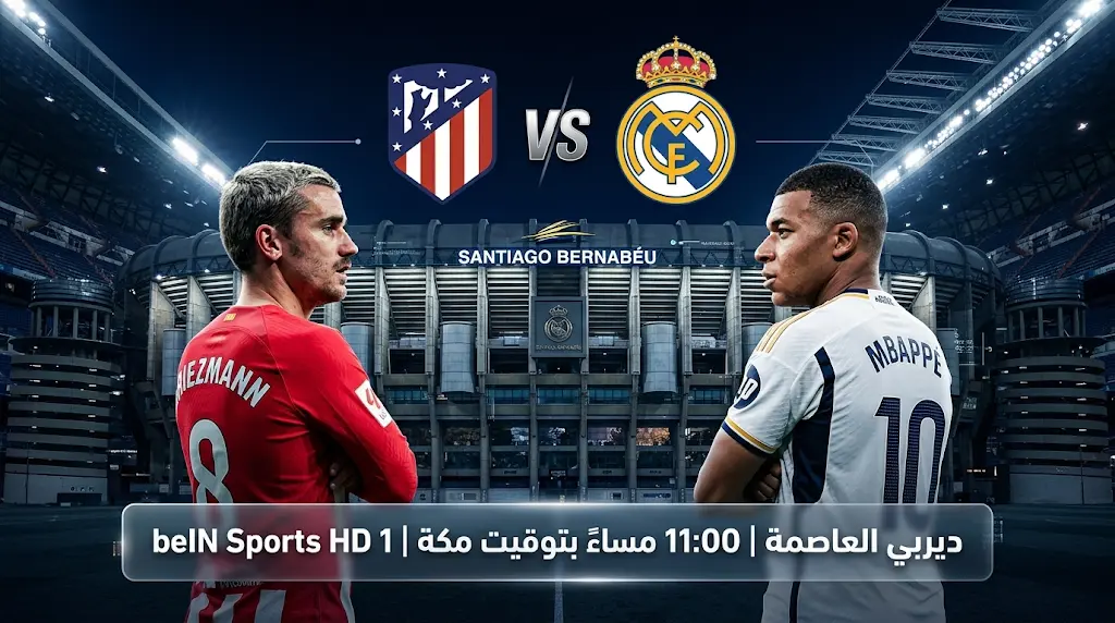 تتجه أنظار عشاق الساحرة المستديرة حول العالم، وخاصة في المملكة العربية السعودية، صوب ملعب “سانتياغو برنابيو” مساء اليوم الأحد 22 مارس 2026، حيث يشهد “ديربي العاصمة” صداماً نارياً بين ريال مدريد وجاره أتلتيكو مدريد ضمن منافسات الأسبوع التاسع والعشرين من الليغا لموسم 2025-2026، يدخل “الملكي” اللقاء بحثاً عن النقاط الثلاث لكسر عقدة النتائج السلبية أمام الروخي بلانكوس وتعزيز ملاحقته للصدارة.
