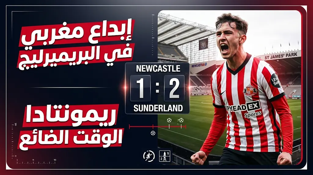 حسم فريق سندرلاند “ديربي التاين-وير” المصغر لصالحه بعدما قلب الطاولة على مضيفه نيوكاسل يونايتد بنتيجة (2-1)، في المباراة التي أقيمت اليوم الأحد 22 مارس 2026، ضمن منافسات الجولة الحادية والثلاثين من الدوري الإنجليزي الممتاز، وشهدت المواجهة تألقاً لافتاً للموهبة المغربية شمس الدين طالبي الذي قاد فريقه لانتزاع ثلاث نقاط ثمينة من قلب ملعب “سانت جيمس بارك”.