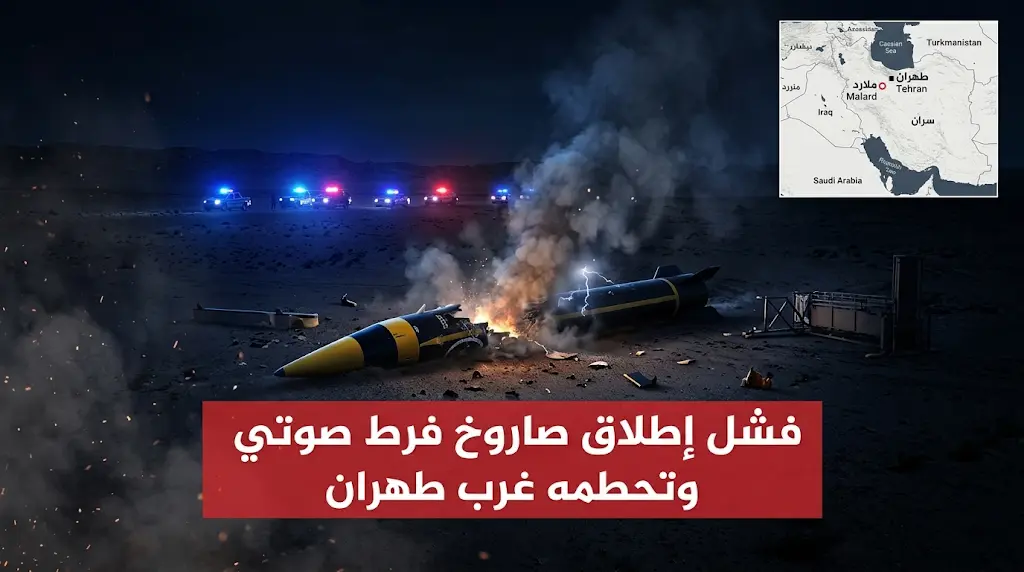 أفادت تقارير إعلامية ميدانية اليوم الأحد 22 مارس 2026، بوقوع حادثة فشل تقني أثناء محاولة إطلاق صاروخ إيراني متطور من الطراز “فرط الصوتي”، مما أدى إلى سقوطه وتحطمه في منطقة “ملارد” الواقعة إلى الغرب من العاصمة طهران، ووفقاً للمعلومات الأولية، فإن الصاروخ لم يتمكن من تجاوز مراحل الإقلاع الأولى، وسقط حطامه في منطقة غير مأهولة بضواحي ملارد، مما أثار حالة من الترقب الأمني في المنطقة.