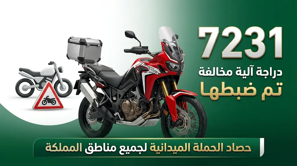 | إجمالي الدراجات المضبوطة | 7231 دراجة آلية مخالفة |