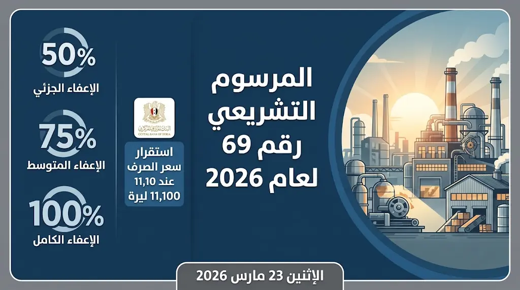 | الحدث الأبرز | صدور المرسوم رقم (69) لعام 2026 للإعفاءات الضريبية |