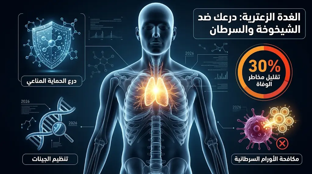 - حماية القلب والرئتين: سجلت البيانات نسباً أقل للإصابة بأمراض القلب التاجية وسرطانات الرئة بفضل الخلايا التائية (T-cells) التي تنتجها الغدة.