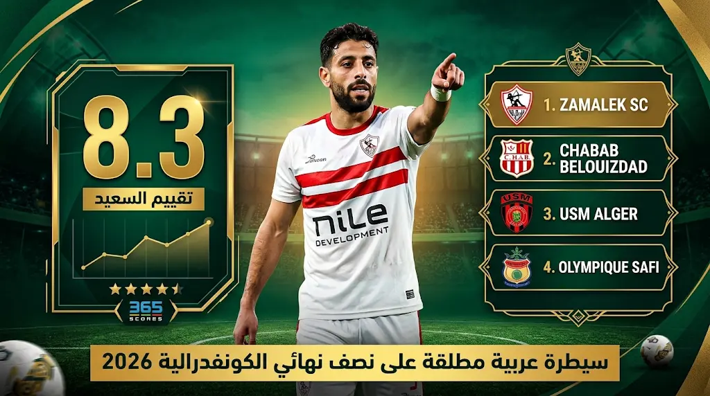 تصدر النجم المصري عبد الله السعيد، صانع ألعاب نادي الزمالك، المشهد القاري بحصوله على أعلى تقييم في الجولة (8.3)، السعيد، وبالرغم من عامل السن، أثبت اليوم 23-3-2026 أنه لا يزال يمتلك الرؤية الفنية التي تضعه فوق الجميع، حيث كان المحرك الأساسي لعمليات “الفارس الأبيض” الهجومية، ونجح في صناعة الفارق بفضل تمريراته الحاسمة وتحكمه الكامل في ريتم اللعب.