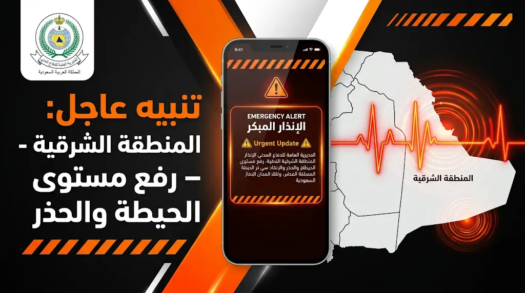 أصدرت المديرية العامة للدفاع المدني، مساء اليوم الاثنين 23 مارس 2026 (الموافق 4 شوال 1447 هـ)، تنبيهاً عاجلاً عبر نظام “الإنذار المبكر” الموجه لسكان المنطقة الشرقية، وذلك للتحذير من خطر محتمل يتطلب رفع مستوى الحيطة والحذر الفوري من قبل المواطنين والمقيمين.
