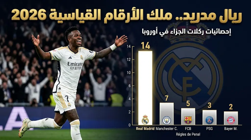 واصل نادي ريال مدريد الإسباني هيمنته الرقمية في موسم 2026، ليس فقط على مستوى النقاط وصدارة الترتيب، بل في كونه الفريق الأكثر استفادة من ركلات الجزاء في الدوريات الأوروبية الخمسة الكبرى، وجاء تأكيد هذا التفوق اليوم الإثنين 23 مارس 2026، بعد احتساب ركلة جزاء جديدة لصالح “الميرينغي” في لقاء “ديربي العاصمة” أمام أتلتيكو مدريد، والتي نجح البرازيلي فينيسيوس جونيور في ترجمتها لهدف، مساهماً في فوز فريقه بنتيجة 3-2 ضمن الجولة 29 من الليغا.