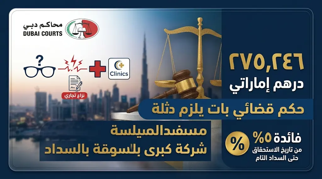 إلزام شركة نظارات في دبي بسداد 275 ألف درهم وفائدة 5% لصالح مؤسسة طبية