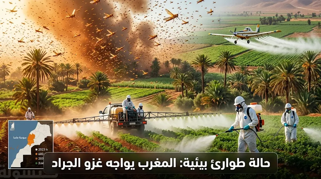 تواجه مناطق جنوب المملكة المغربية اليوم، الثلاثاء 24 مارس 2026 (الموافق 5 شوال 1447 هـ)، موجة نشطة من أسراب الجراد الصحراوي المتدفقة من مناطق الساحل والصحراء، وسجلت السلطات الفلاحية وصول مجموعات من هذه الآفة إلى جهة سوس ماسة، وتحديداً في إقليمي “اشتوكة أيت باها” و”طاطا”، وسط مخاوف من تأثيرها على المحاصيل الزراعية الحيوية في المنطقة.
