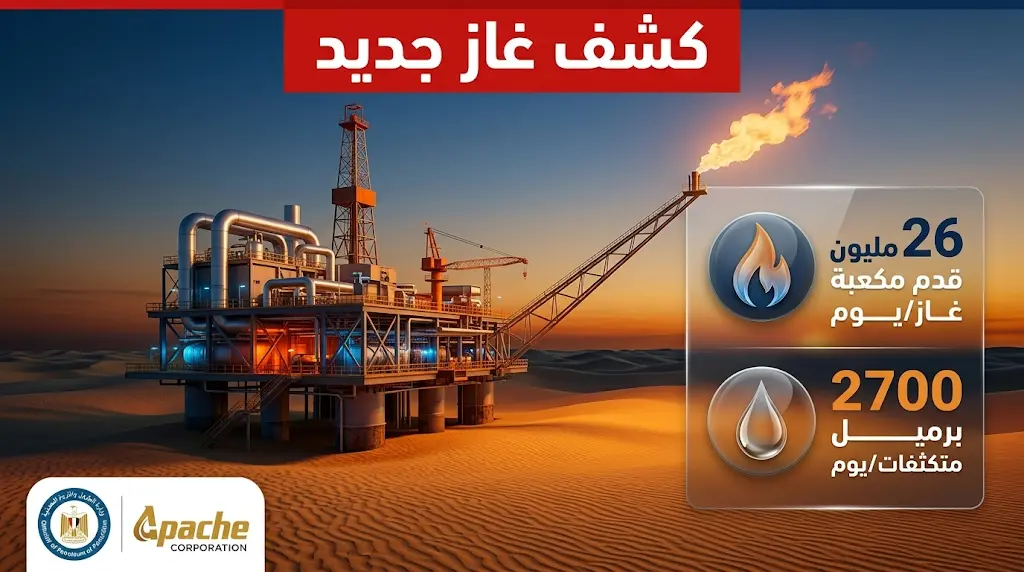 أعلنت وزارة البترول والثروة المعدنية المصرية، في بيان رسمي صدر اليوم الثلاثاء 24 مارس 2026، عن نجاح شركة “أباتشي” الأمريكية، بالتعاون مع الهيئة المصرية العامة للبترول، في تحقيق كشف جديد ومهم للغاز الطبيعي في منطقة “جنوب كلابشة” بالصحراء الغربية عبر البئر الاستكشافية “SKAL-1X”.