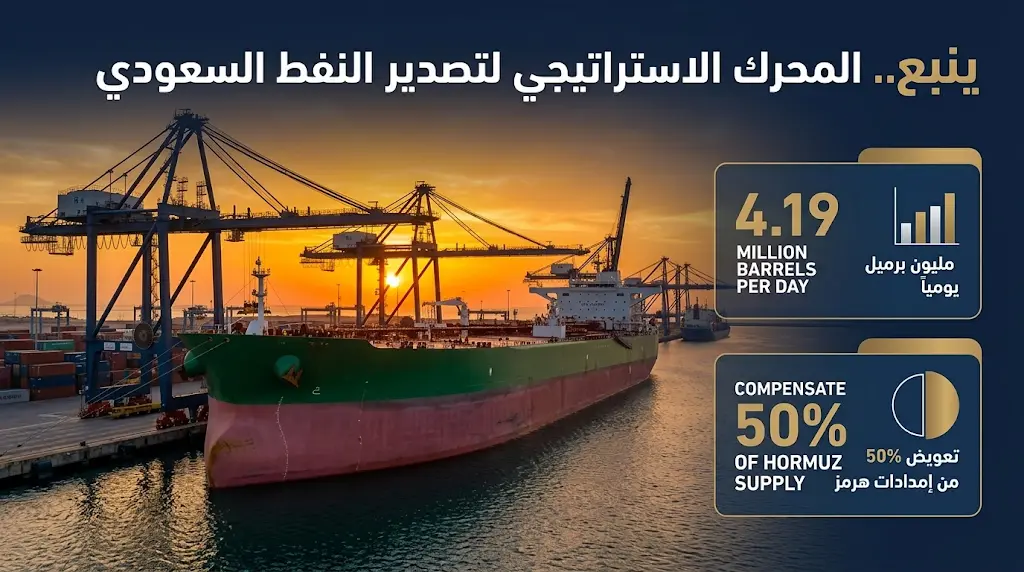أثبت ميناء ينبع كفاءة عالية في إدارة الأزمة الجيوسياسية الراهنة، حيث تمكنت المملكة عبره من تعويض نحو 50% من الحصص النفطية التي كانت تمر عبر مضيق هرمز، وسجل الميناء ذروة تصديرية لافتة وصلت إلى 4.19 مليون برميل يومياً خلال الأسبوع المنصرم.