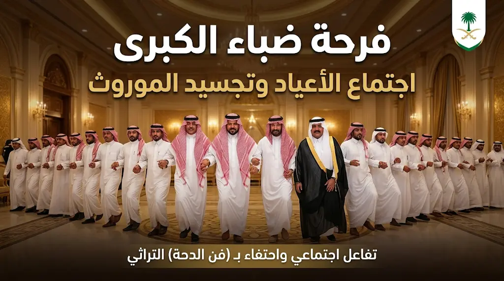 تجسيداً للأصالة والموروث الشعبي العريق، تخللت الاحتفالية فقرات من فن “الدحة” الشهير، حيث تفاعل الحاضرون مع الأهازيج التراثية التي أضفت رونقاً خاصاً على الحفل، وسادت أجواء من الفخر والاعتزاز بالهوية الوطنية وسط تبادل التهاني والتبريكات، مما جعل من المناسبة لوحة اجتماعية تعكس ترابط أبناء المجتمع السعودي في أفراحهم.