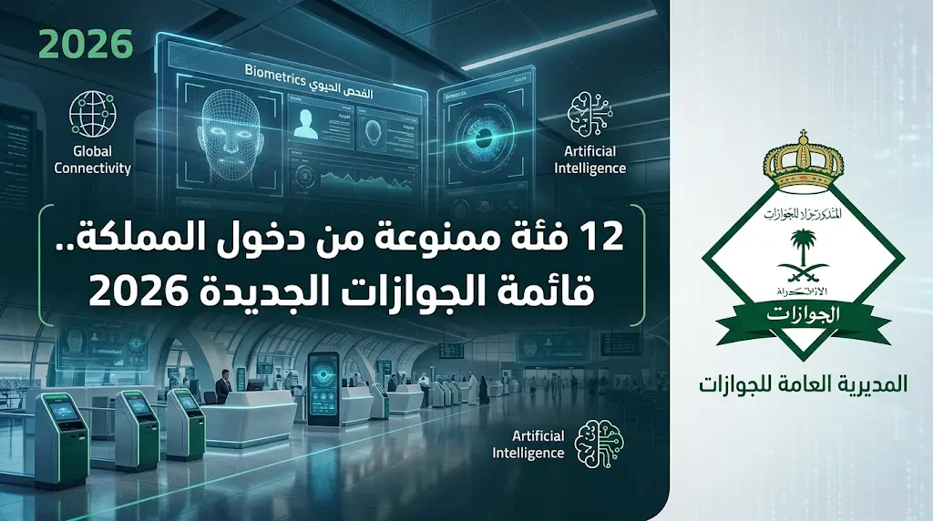 أصدرت المديرية العامة للجوازات السعودية اليوم، الأربعاء 25 مارس 2026 (الموافق 7 شوال 1447 هـ)، بياناً تفصيلياً يحدد 12 فئة من الأفراد الذين لن يُسمح لهم بتجاوز منافذ المملكة العربية السعودية، يأتي هذا القرار في إطار تعزيز منظومة الأمن الوطني ورفع كفاءة الضبط القانوني عبر المنافذ البرية والجوية والبحرية، بالاعتماد على تقنيات الذكاء الاصطناعي والربط الدولي المباشر.