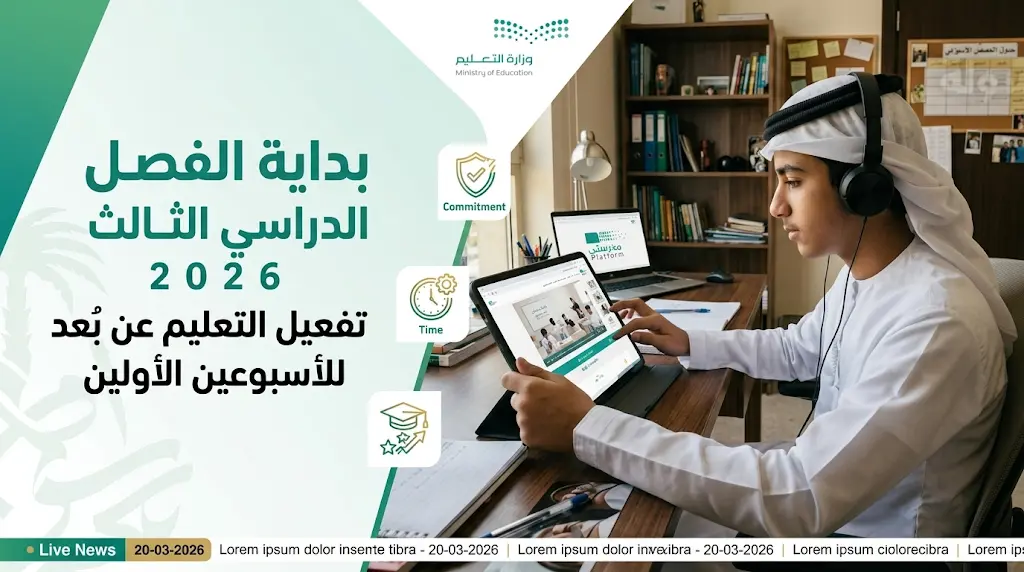 شدد مختصون في الشأن التربوي على أن انطلاقة الفصل الدراسي الثالث اليوم، الأربعاء 25 مارس 2026 (الموافق 6 شوال 1447 هـ)، تفرض على الطلبة مستويات غير مسبوقة من الالتزام والوعي، خاصة مع تفعيل نظام التعليم “عن بُعد” في هذه الفترة الحساسة التي تلي إجازة عيد الفطر المبارك، وحذر الخبراء من مغبة التراخي، مؤكدين أنها تمثل الجسر العابر نحو النتائج الأكاديمية النهائية وتحديد المسارات الجامعية المستقبليّة.