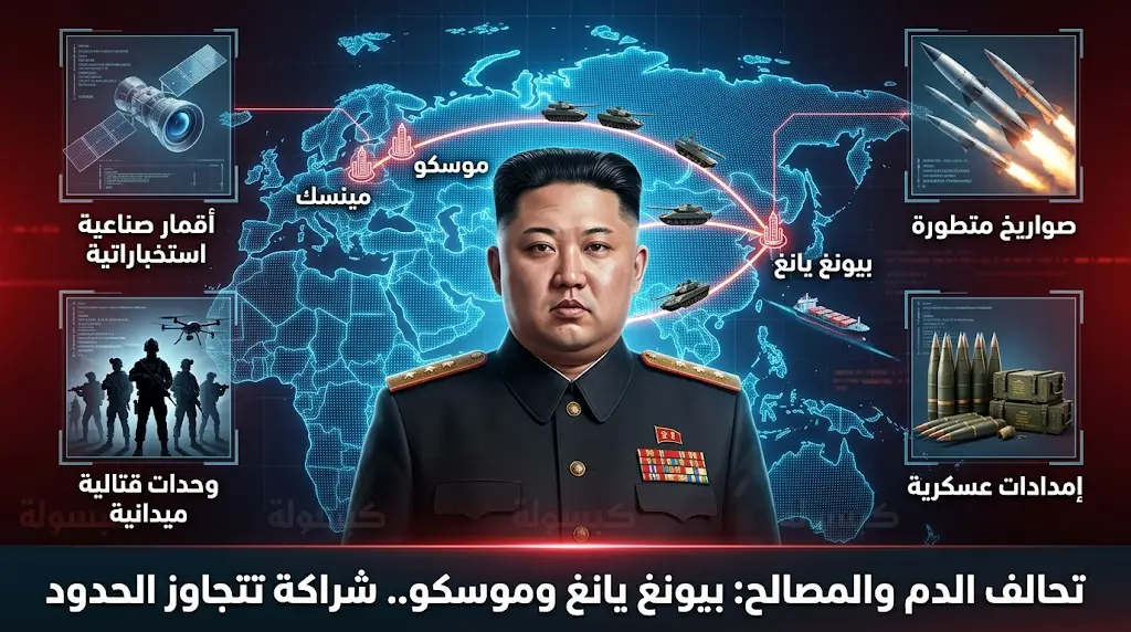 • المقابل الاستراتيجي: يرى محللون أن بيونغ يانغ تجني ثمار هذا الدعم عبر الحصول على تكنولوجيا عسكرية متطورة (خاصة في مجال الأقمار الصناعية)، ومساعدات مالية ضخمة، إضافة إلى إمدادات حيوية من الغذاء والطاقة لتعزيز الجبهة الداخلية الكورية.