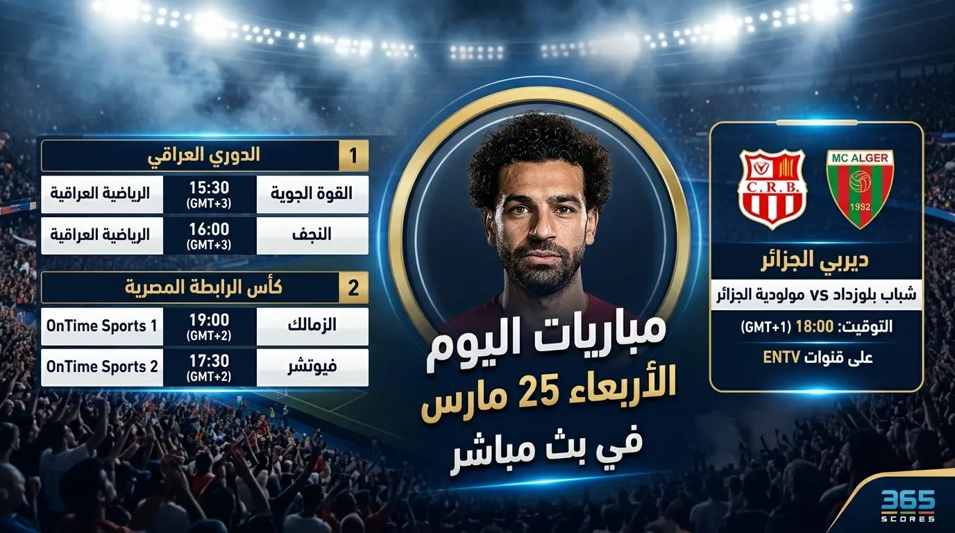 تترقب الجماهير العربية اليوم، الأربعاء 25 مارس 2026، وجبة كروية دسمة مع انطلاق سلسلة من المباريات القوية في الملاعب المحلية، وتكتسب لقاءات اليوم أهمية خاصة نظراً لتأثيرها المباشر على صراع الصدارة وتحسين المراكز، وسط توقعات بندية كبيرة وتنافسية عالية بين الفرق المشاركة في ظل استمرار النشاط الكروي خلال فترة التوقف الدولي الحالية.