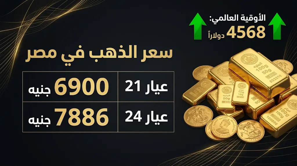 أسعار الذهب اليوم في مصر الأربعاء 25-3-2026.. عيار 21 يسجل 6900 جنيه وتخطى الأوقية 4568 دولاراً