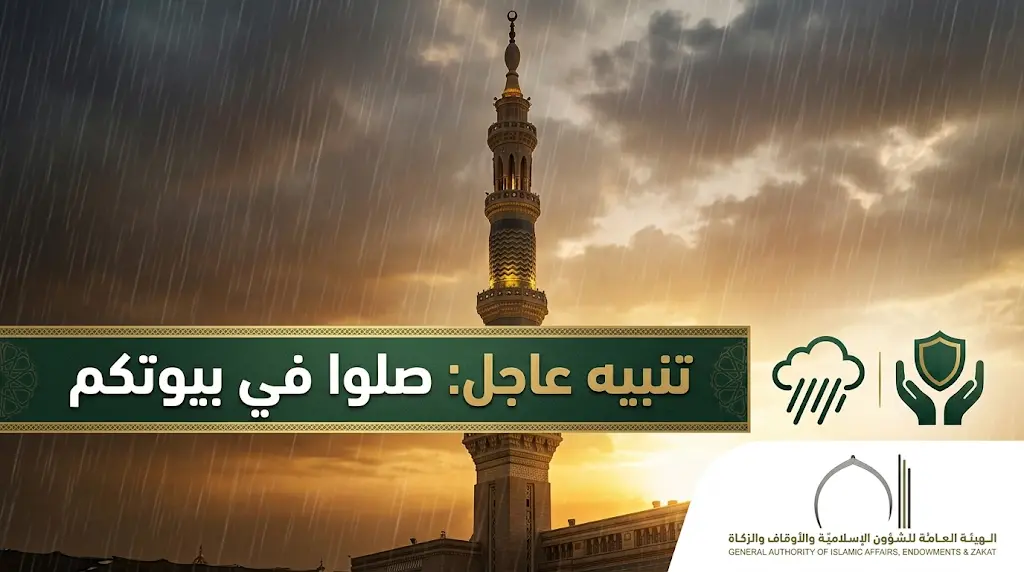 أصدرت الهيئة العامة للشؤون الإسلامية والأوقاف والزكاة، اليوم الأربعاء 25 مارس 2026، تنبيهاً عاجلاً للمصلين في كافة مساجد الدولة الواقعة ضمن نطاق المناطق المتأثرة بالحالة المطرية، بضرورة أداء الصلوات داخل البيوت، مؤكدة أن هذا الإجراء يأتي انطلاقاً من مقاصد الشريعة الإسلامية التي تضع حماية النفس وسلامة المجتمع كأولوية قصوى في ظل الظروف الجوية الراهنة.