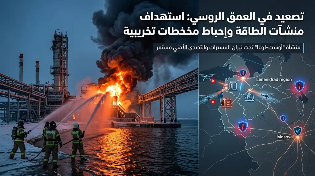 شهدت الساحة الروسية الأوكرانية تصعيداً ميدانياً خطيراً اليوم الخميس 26 مارس 2026، استهدف البنية التحتية الحيوية للطاقة في العمق الروسي، حيث اندلع حريق ضخم في ميناء “أوست-لوغا” الاستراتيجي على بحر البلطيق، بالتزامن مع إعلان السلطات الأمنية في موسكو عن إحباط مخططات تخريبية تقودها استخبارات خارجية.