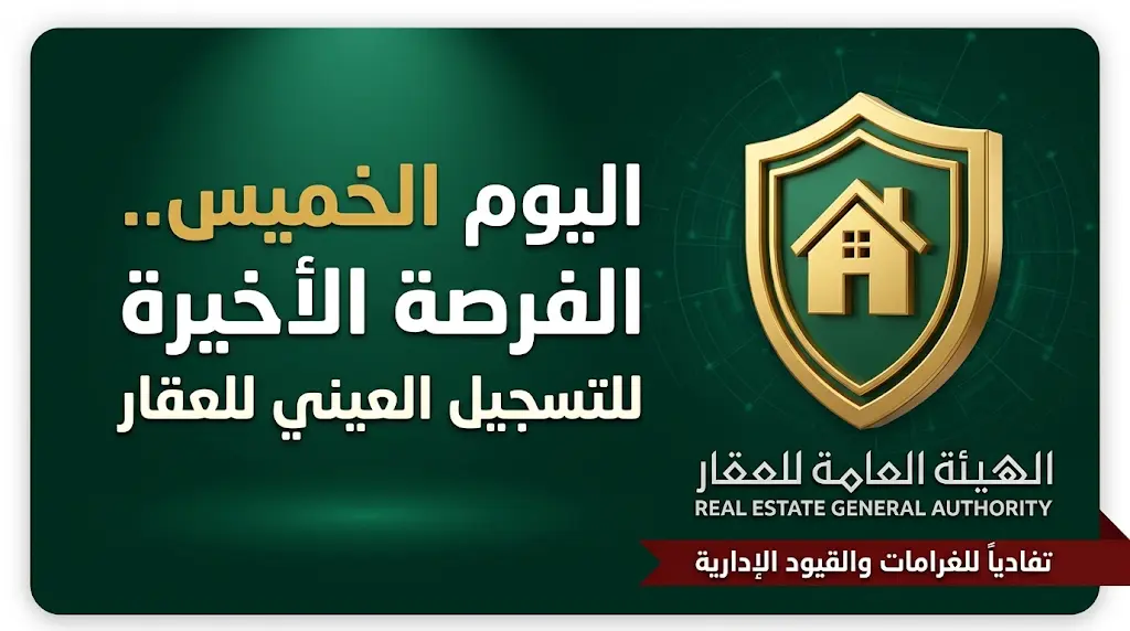 أعلنت الهيئة سابقاً أن التسجيل العيني الأول للمناطق المعلنة يكون “مجاني” لفترة محددة، لذا يجب الاستفادة من المهلة قبل انتهائها اليوم.