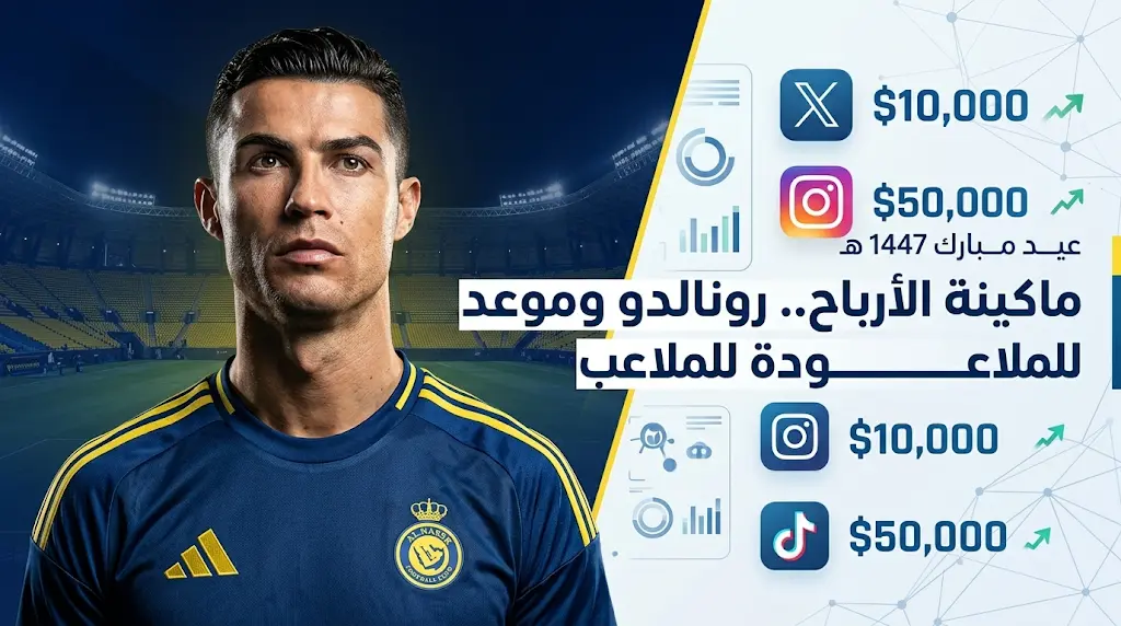تتصدر مكاسب الأسطورة البرتغالي كريستيانو رونالدو، قائد نادي النصر السعودي، حديث المنصات الرقمية العالمية اليوم الخميس 26 مارس 2026، وذلك بعد التفاعل المليوني التاريخي الذي صاحب تهنئته بمناسبة عيد الفطر المبارك لعام 1447 هجرياً، وتكشف التقارير أن هذه المنشورات تجاوزت كونها مجرد تواصل اجتماعي، لتتحول إلى “ماكينة أرباح” ضخمة تعكس القيمة التسويقية للنجم الأول عالمياً في بيئة الاستثمار الرياضي السعودي.
