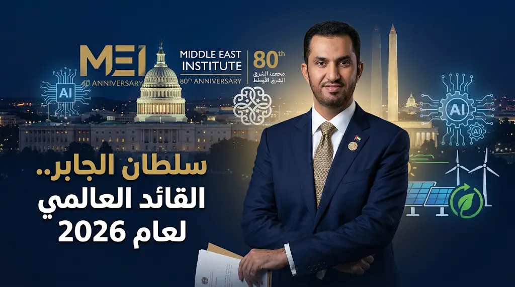 شهدت العاصمة الأمريكية واشنطن، مساء أمس الأربعاء 25 مارس 2026، تكريماً دولياً رفيعاً لدولة الإمارات العربية المتحدة، حيث تسلّم معالي الدكتور سلطان بن أحمد الجابر، وزير الصناعة والتكنولوجيا المتقدمة والعضو المنتدب والرئيس التنفيذي لشركة “أدنوك”، جائزة “القيادة العالمية المتميزة لعام 2026” خلال الحفل السنوي الثمانين لمعهد الشرق الأوسط.