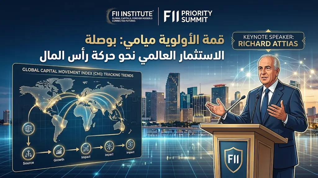 افتتحت مؤسسة مبادرة مستقبل الاستثمار (FII Institute) اليوم الخميس 26 مارس 2026، فعاليات اليوم الأول من «قمة الأولوية» (Priority Summit) في مدينة ميامي الأمريكية، وتأتي القمة هذا العام تحت شعار «حركة رأس المال»، لتكون المنصة الأبرز عالمياً في الربع الأول من عام 2026 لمناقشة تحولات الاستثمار الدولي وتدفقات السيولة نحو مراكز النمو الجديدة في ظل التغيرات الجيوسياسية المتسارعة.