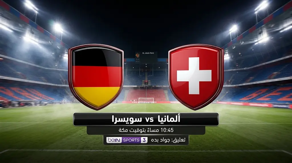 تنطلق صافرة بداية مباراة ألمانيا وسويسرا الودية اليوم الجمعة الموافق 27 مارس 2026، في تمام الساعة 10:45 مساءً بتوقيت مكة المكرمة والدوحة، والساعة 9:45 مساءً بتوقيت القاهرة، وتأتي هذه المباراة في توقيت حاسم للمدربين للوقوف على القائمة النهائية التي ستخوض غمار المونديال القادم.