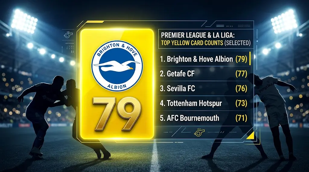 • المركز الأول: برايتون (إنجلترا) – 79 بطاقة صفراء.