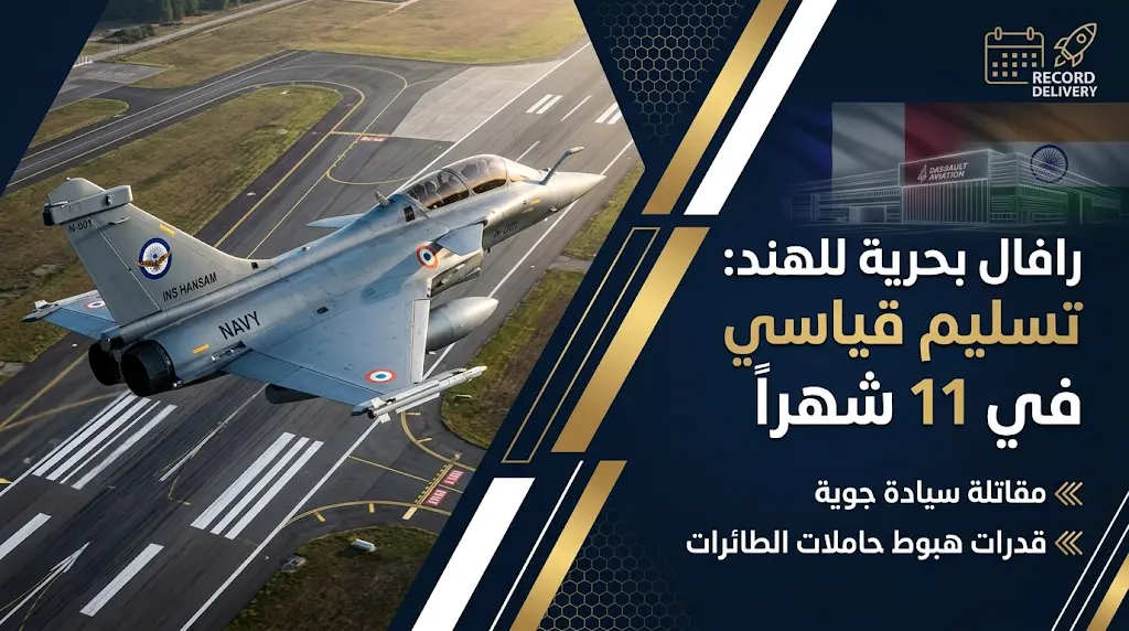 في خطوة تعكس الكفاءة الصناعية الفرنسية الفائقة، أعلنت شركة “داسو للطيران” والسلطات الرسمية اليوم، الجمعة 27 مارس 2026، عن تسليم أول طائرة من طراز “رافال بحرية” (Rafale M) مزدوجة المقعد إلى القوات البحرية الهندية، يأتي هذا التسليم بعد مرور 11 شهراً فقط من توقيع العقد الرسمي في أبريل 2025، مما يضع الصفقة في مسار زمني قياسي يقلص فترات الانتظار المعتادة في الصناعات الدفاعية الكبرى.