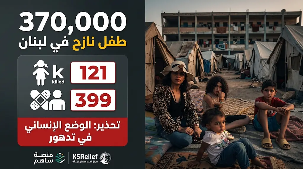 عدد الأطفال النازحين 370,000 طفل