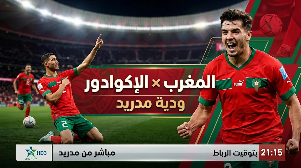 تتجه أنظار عشاق كرة القدم العربية والمغربية مساء اليوم الجمعة 27 مارس 2026، صوب ملعب “طيران الرياض متروبوليتانو” بالعاصمة الإسبانية مدريد، حيث يخوض المنتخب المغربي اختباراً ودياً قوياً أمام نظيره الإكوادوري، تأتي هذه المواجهة في إطار استعدادات “أسود الأطلس” النهائية لخوض غمار نهائيات كأس العالم 2026، وسط ترقب جماهيري كبير للمسة الفنية الأولى للمدرب الوطني محمد وهبي.