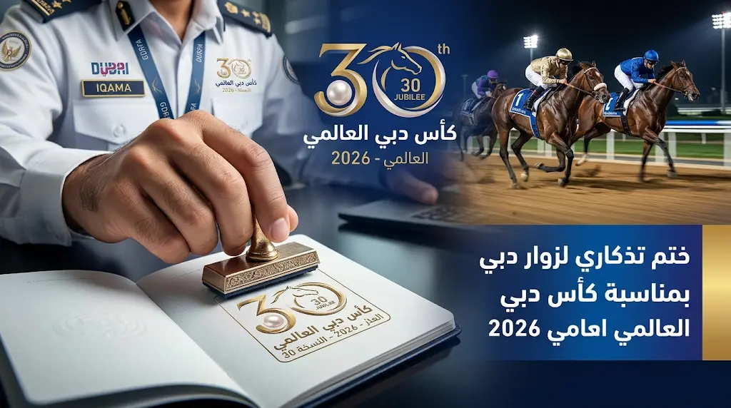 استقبلت مطارات دبي اليوم الجمعة 27 مارس 2026، القادمين عبر منافذها الجوية بختم تذكاري خاص يحمل شعار “كأس دبي العالمي 2026″، وذلك بالتزامن مع الاستعدادات النهائية لانطلاق النسخة الثلاثين من البطولة التي تعد الأبرز في أجندة سباقات الخيل العالمية.