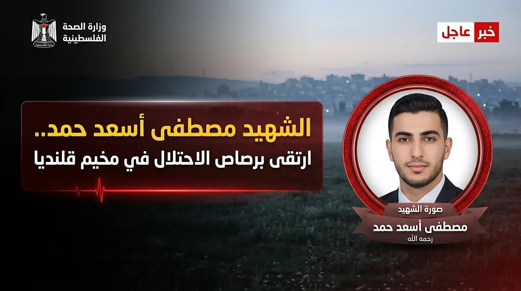 أعلنت وزارة الصحة الفلسطينية في رام الله، فجر اليوم الجمعة 27 مارس 2026 (الموافق 8 شوال 1447 هـ)، عن ارتقاء الشاب مصطفى أسعد حمد، البالغ من العمر 22 عاماً، متأثراً بإصابته الحرجة برصاص قوات الاحتلال الإسرائيلي خلال عملية عسكرية استهدفت بلدة كفر عقب ومخيم قلنديا شمال مدينة القدس المحتلة.