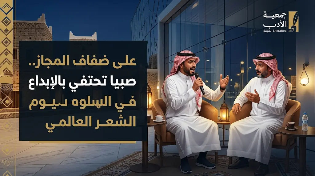 بتنظيم من سفراء جمعية الأدب المهنية، شهدت محافظة صبيا ليلة أدبية استثنائية بعنوان «على ضفاف المجاز»، جمعت نخبة من المثقفين والأدباء والشعراء في منطقة جازان، تفعيلاً لمناسبة اليوم العالمي للشعر 2026 وتعزيزاً للحضور الثقافي في المنطقة، وتزامناً مع الأجواء الاحتفالية بعيد الفطر المبارك لهذا العام 1447هـ.