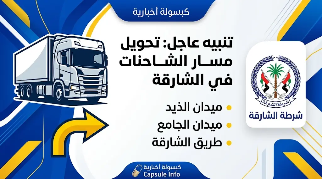 أصدرت القيادة العامة لشرطة الشارقة، اليوم السبت 28 مارس 2026، تنبيهاً عاجلاً لمستخدمي الطرق وقائدي المركبات الثقيلة، أعلنت فيه عن بدء تنفيذ خطة تنظيمية مؤقتة تتضمن تحويل مسار الشاحنات في بعض المناطق الحيوية، ودعت الشرطة الجميع إلى ضرورة التعاون التام وتوخي أقصى درجات الحيطة والحذر، والالتزام الصارم بالمسارات المحددة لتجنب الازدحامات أو المخالفات القانونية.