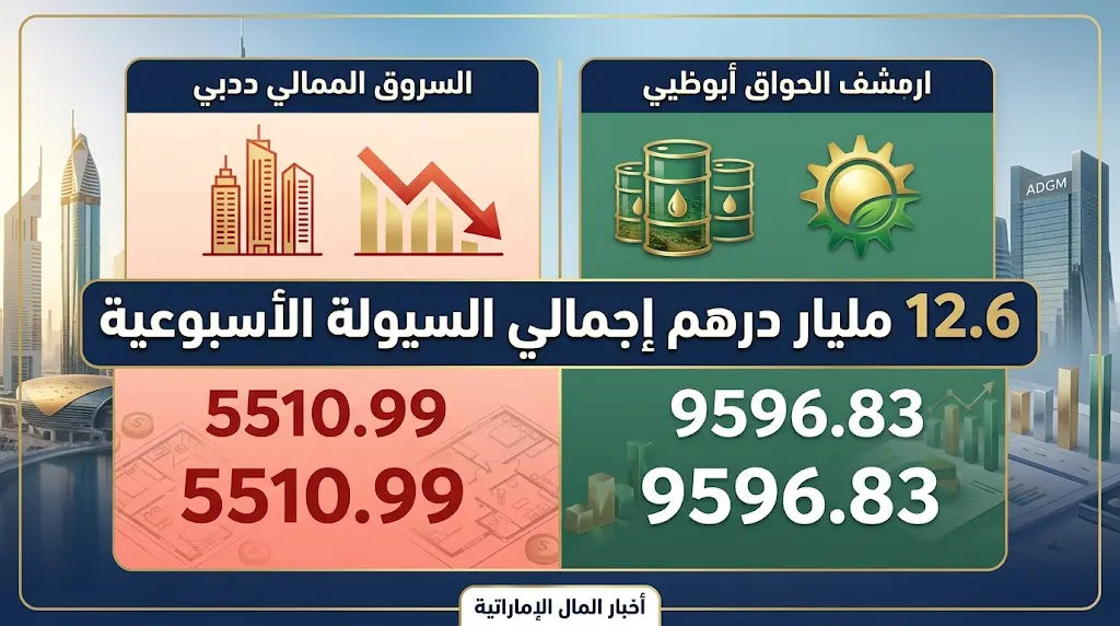 | المؤشر / البيان | الإغلاق (نقطة) | نسبة التغير الأسبوعي | إجمالي السيولة (درهم) |