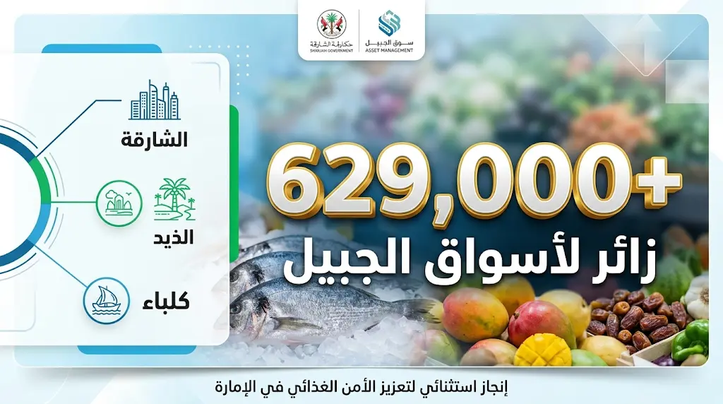 كشفت البيانات الرسمية الصادرة اليوم السبت 28 مارس 2026، عن تحقيق أسواق الجبيل في إمارة الشارقة (الشارقة، والذيد، وكلباء) طفرة قياسية في أعداد المرتادين خلال موسم رمضان المبارك وعيد الفطر لعام 1447 هـ، حيث استقبلت الأسواق ما يزيد عن 629 ألف زائر، وسط منظومة متكاملة لضمان استدامة سلاسل الإمداد وتوافر السلع الطازجة.