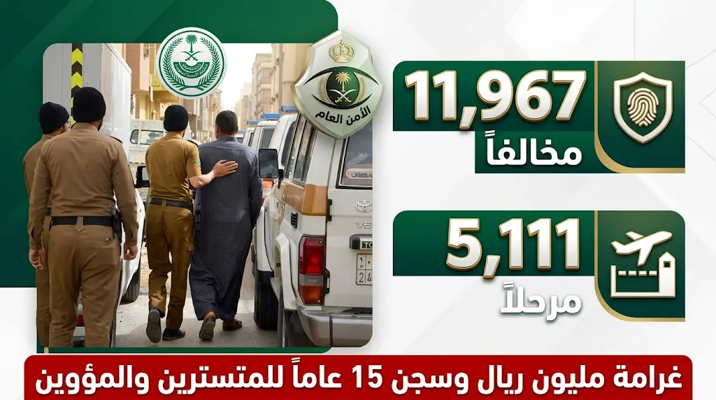 شددت وزارة الداخلية على أن تقديم أي وسيلة مساعدة للمخالف (نقل، إيواء، أو تشغيل) يعد جريمة كبرى تستوجب العقوبات التالية: