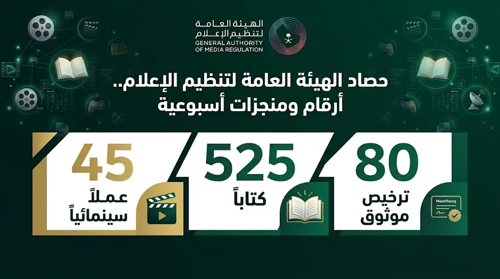 وعلى صعيد الكوادر البشرية في القطاع، أتمت الهيئة 350 تسجيلاً مهنيًا جديداً للإعلاميين والممارسين، مما يرفع من كفاءة العمل الإعلامي ويمنح الممارسين صفة رسمية لمزاولة أعمالهم، كما تم إصدار 80 ترخيصاً إعلامياً للمنشآت، و5 شهادات “عدم ممانعة” لمزاولة أنشطة إعلامية متنوعة خلال هذا الأسبوع.