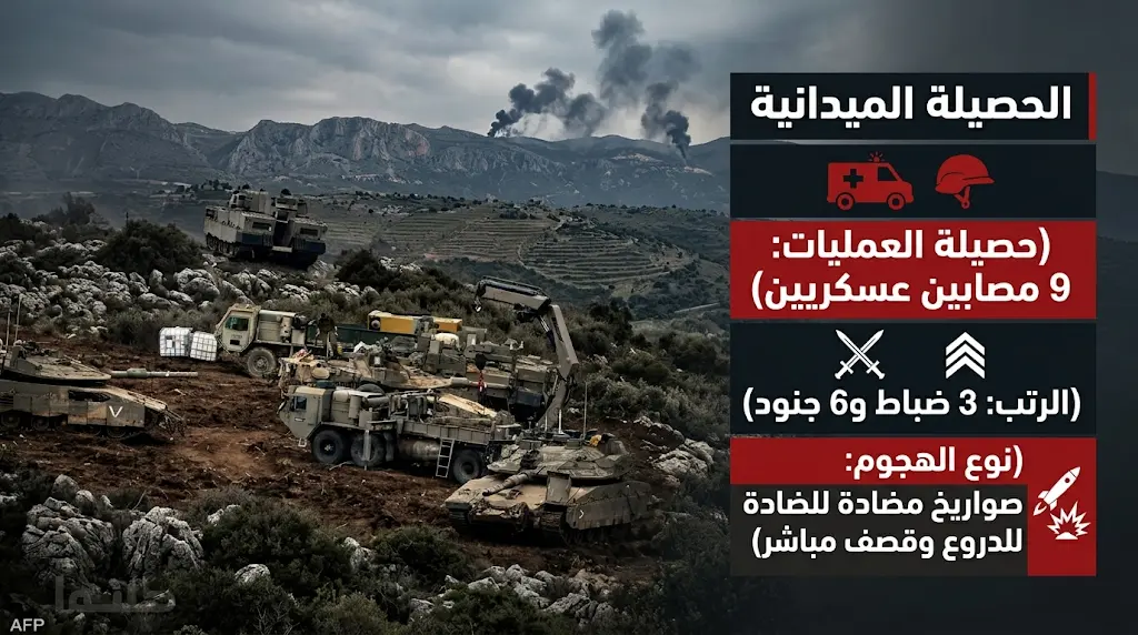 ما هي طبيعة الأسلحة التي أدت لوقوع هذه الإصابات؟تركزت الإصابات نتيجة استخدام صواريخ مضادة للدروع (Anti-Tank) في الاشتباكات المباشرة، بالإضافة إلى القصف الصاروخي المركز على تجمعات الجنود.
