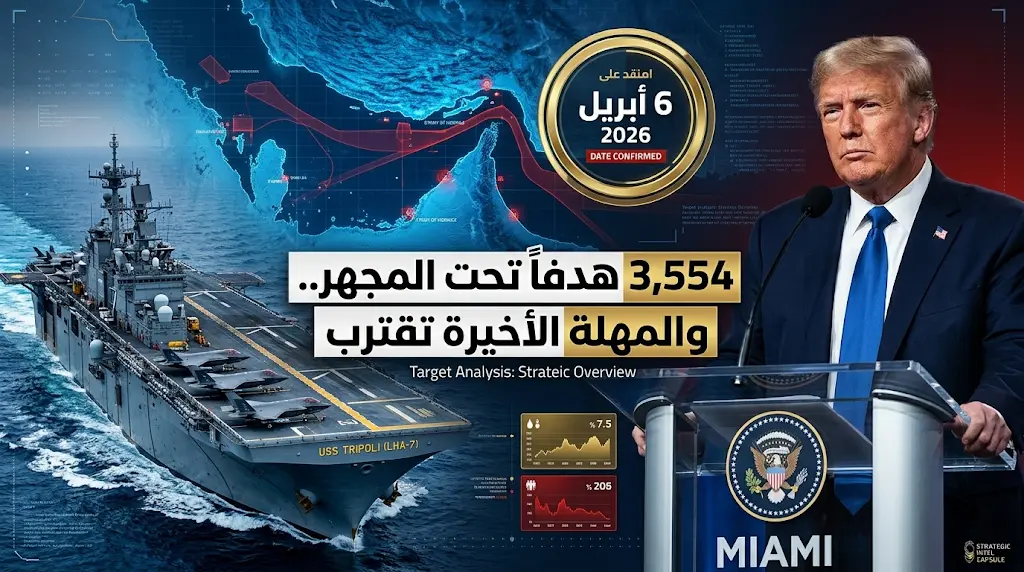 وصرح ترامب قائلاً: “لقد حددنا 3,554 هدفاً إضافياً داخل إيران، وهي أهداف حيوية سيتم التعامل معها بسرعة فائقة إذا لم تلتزم طهران بالاتفاقيات الدولية”، ووصف الحالة الراهنة للنظام الإيراني بأنه فقد الكثير من أوراق ضغطه نتيجة الحصار البحري والانتشار العسكري المكثف.