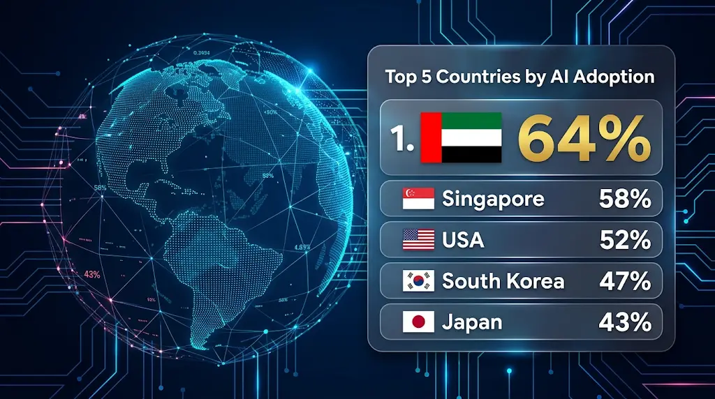 • دولة الإمارات تتربع على عرش الصدارة العالمية في استخدام أدوات الذكاء الاصطناعي بنسبة 64%.