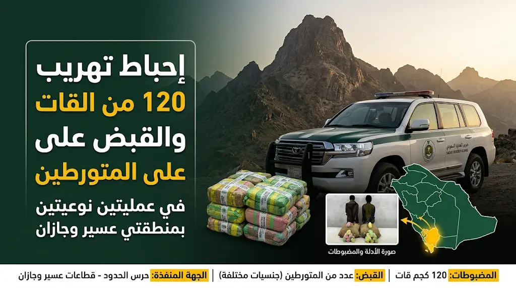 في إطار الجهود الأمنية المستمرة لتأمين حدود المملكة العربية السعودية، أعلنت السلطات المختصة اليوم السبت 28 مارس 2026 (9 شوال 1447هـ)، عن نجاح دوريات حرس الحدود في إحباط محاولات تهريب كميات كبيرة من المواد المخدرة في منطقتي عسير وجازان، مما أسفر عن القبض على متورطين من جنسيات مختلفة.
