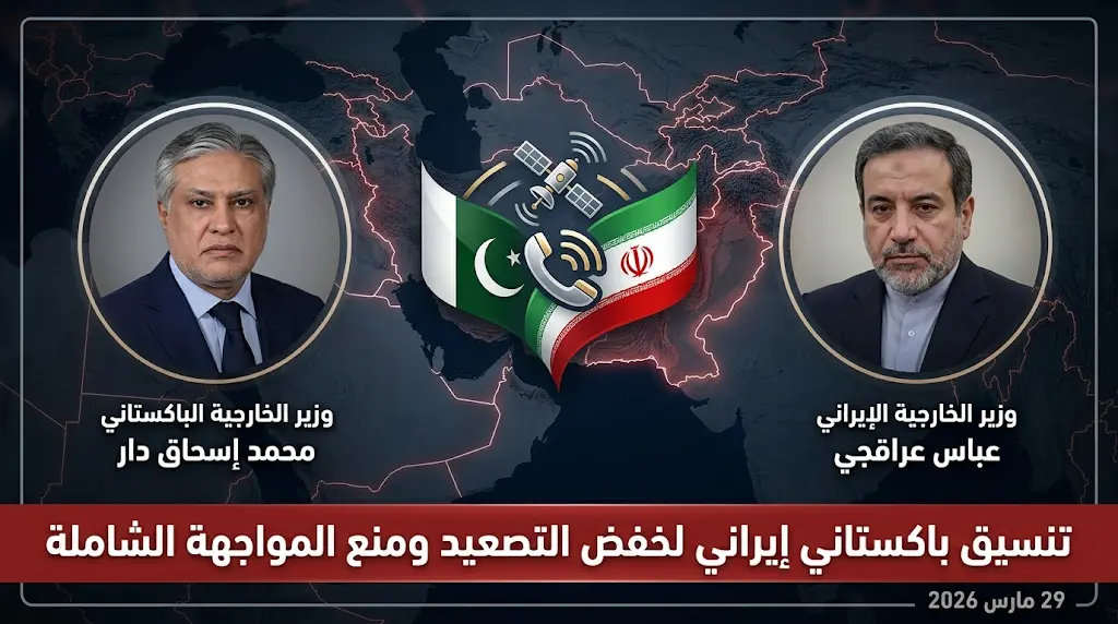 أجرى نائب رئيس الوزراء ووزير الخارجية الباكستاني، محمد إسحاق دار، اليوم السبت 28 مارس 2026، اتصالاً هاتفياً بوزير الخارجية الإيراني، عباس عراقجي، وتناول الاتصال استعراضاً شاملاً لمستجدات الأوضاع الإقليمية المتسارعة وتطورات الأحداث التي تشهدها المنطقة، في ظل مساعي دولية حثيثة لمنع انزلاق الأوضاع إلى مواجهة شاملة.
