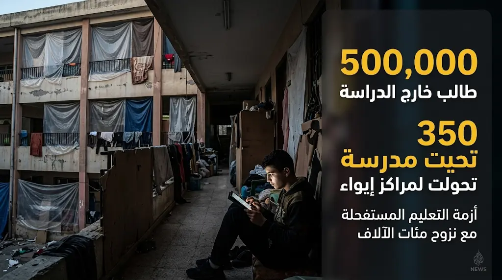أدت التطورات العسكرية الأخيرة في لبنان إلى وضع كارثي يهدد مستقبل الأجيال الصاعدة، حيث أكدت منظمة الأمم المتحدة للطفولة (يونيسف) أن الحرب تسببت في إخراج نحو 500 ألف طالب من مقاعد الدراسة، يأتي هذا التعطل القسري بعد أن تحولت أكثر من 350 مدرسة حكومية إلى ملاذات آمنة لعائلات النازحين، بينما اضطرت المدارس الواقعة في مناطق النزاع المباشر إلى إغلاق أبوابها تماماً نتيجة القصف المكثف.