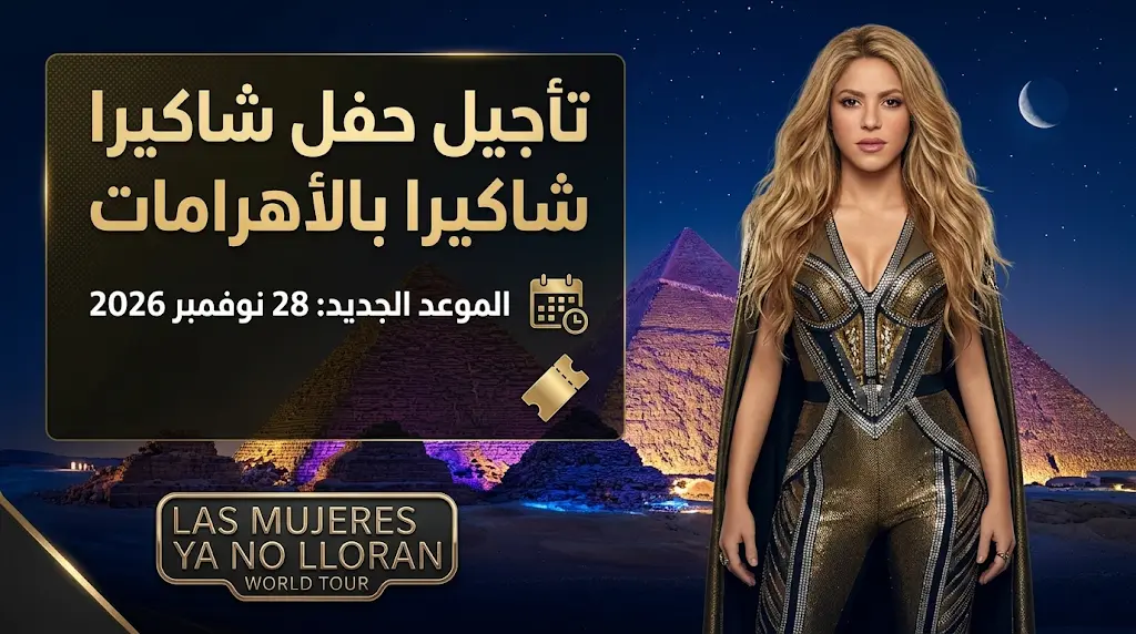 أعلنت الشركة المنظمة لجولة النجمة العالمية شاكيرا “Las Mujeres Ya No Lloran World Tour” رسمياً، اليوم الأحد 29 مارس 2026، عن تأجيل حفلها المرتقب في منطقة أهرامات الجيزة بجمهورية مصر العربية، والذي كان مقرراً إقامته في السابع من أبريل المقبل، ليتم ترحيله إلى أواخر العام الجاري.