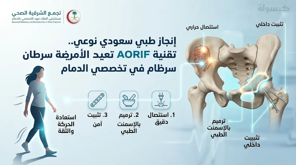 سجل مستشفى الملك فهد التخصصي بالدمام، التابع لـ تجمع الشرقية الصحي، إنجازاً طبياً نوعياً اليوم الأحد 29 مارس 2026، يُعد الأول من نوعه على مستوى المملكة العربية السعودية، حيث تمكن فريق طبي متخصص من إنهاء معاناة مريضة في العقد الثالث من عمرها كانت تعاني من انتشار أورام سرطانية في عظام الحوض، مما أفقدها القدرة على الحركة تماماً.