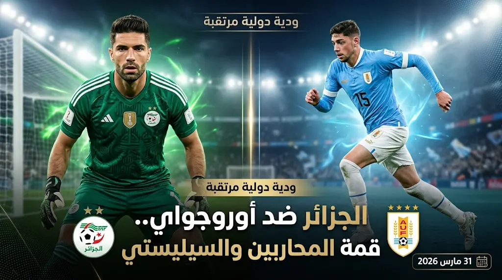 تقرر إقامة المباراة الودية بين الجزائر وأوروجواي يوم الثلاثاء المقبل الموافق 31 مارس 2026، وذلك ضمن أسبوع الفيفا الدولي (FIFA Window)، وتأتي هذه المباراة كقمة كروية تهدف لقياس الجاهزية البدنية والفنية أمام مدرسة لاتينية عريقة تضم نخبة من نجوم الدوريات الأوروبية.
